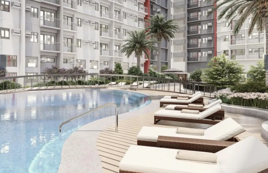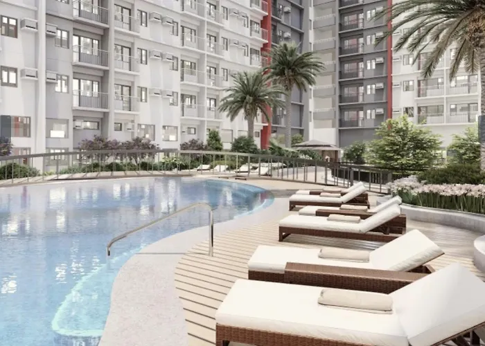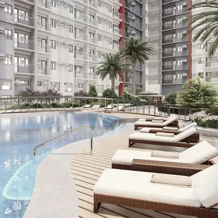寝室1室の2Br Apartment Plus Free Parking Near Naia マニラ市から歩いて6分離れたBastille Bistro Santana Groveなどの市内の観光スポットへ行きやすいです。 33m²のアパートには、プールの景色を望むテラスが備わります。